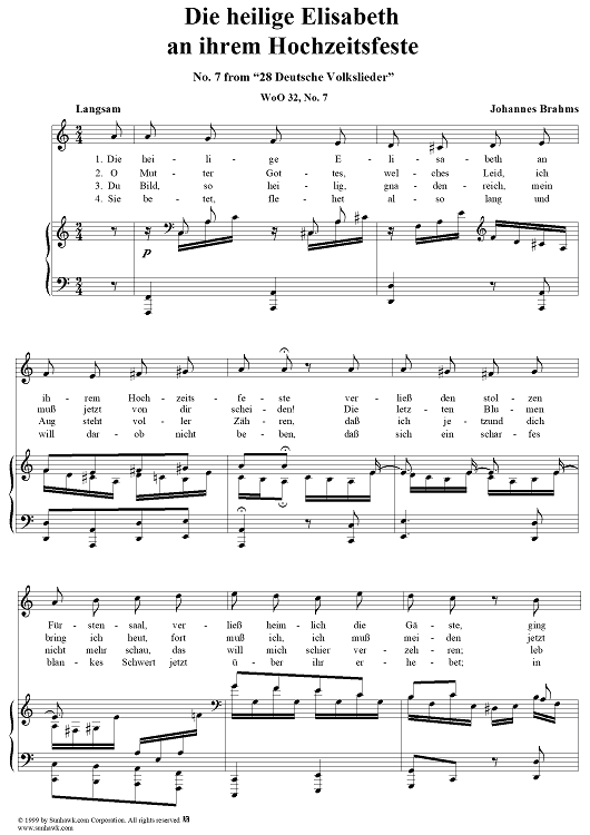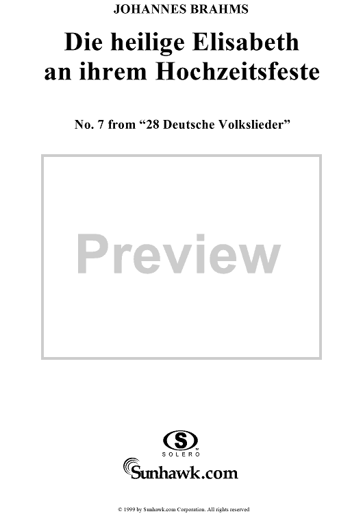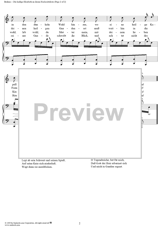 Digital Sheet Music for Die heilige Elisabeth an ihrem Hochzeitsfeste by Johannes Brahms scored for Voice/Piano; id:118462