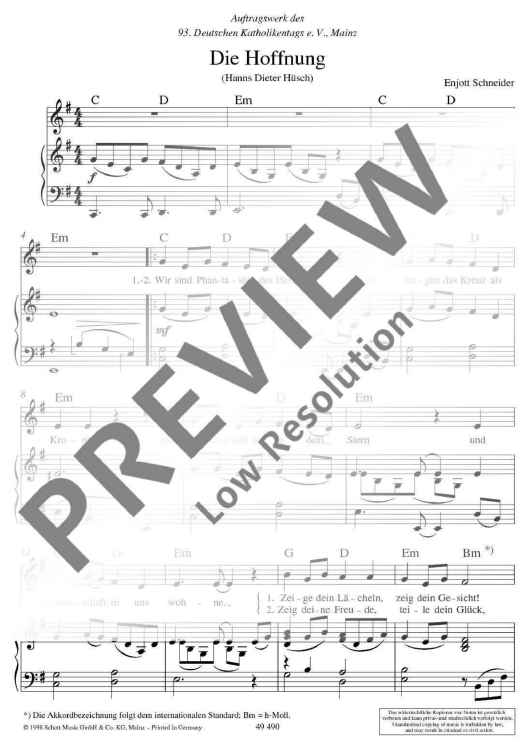 Digital Sheet Music for Die Hoffnung - Organ Reduction by Enjott Schneider scored for Mixed Choir (satb Or Unisono) A Cappella Or With Organ/piano (combo); id:490664