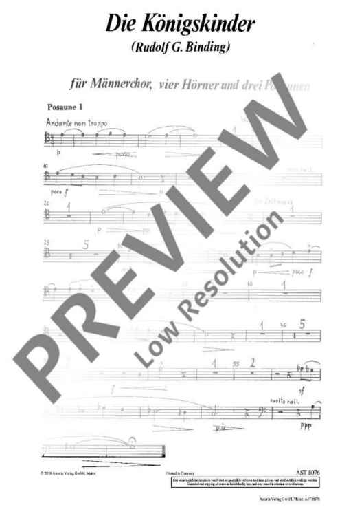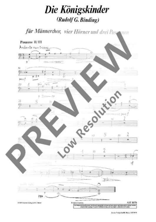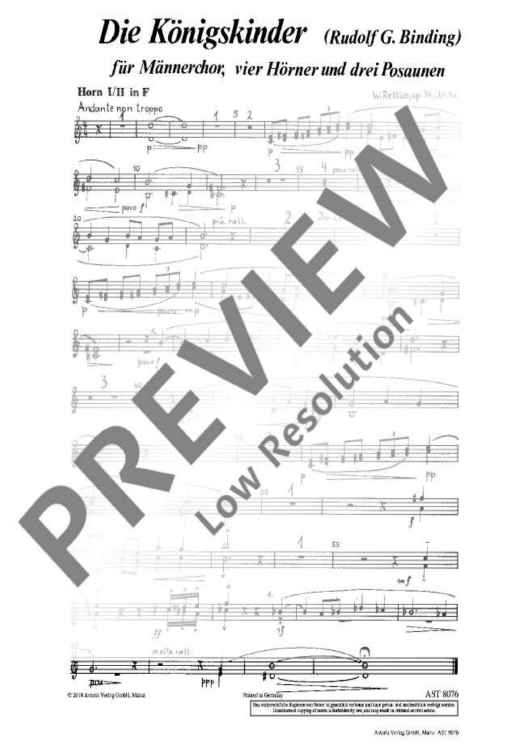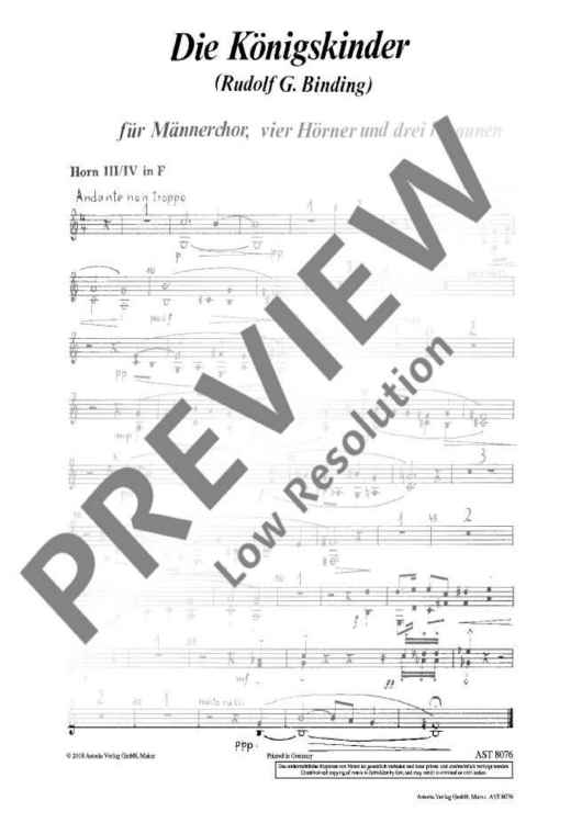 Digital Sheet Music for Die Konigskinder - Score and Parts by Wilhelm Rettich scored for Men's Choir, 4 Horns And 3 Trombones; id:492945