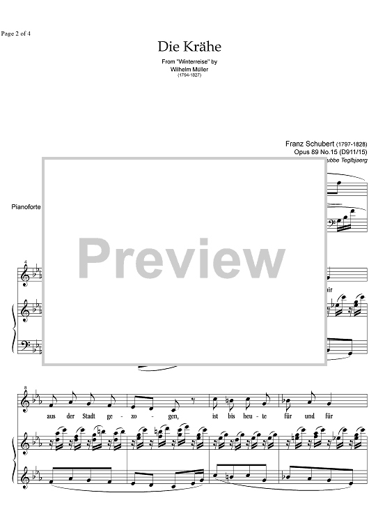 Digital Sheet Music for Die Krähe Op.89 No.15 D911 by , Franz Schubert scored for Tenor/Piano; id:331940
