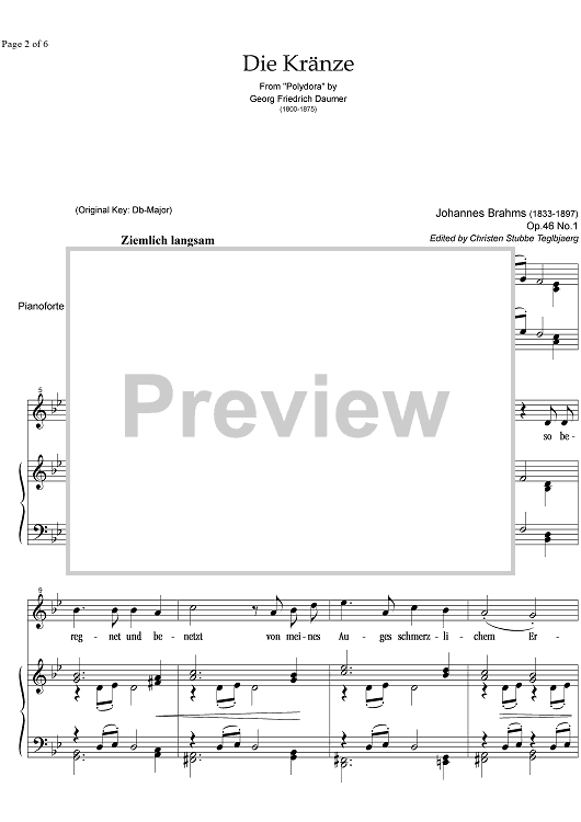 Digital Sheet Music for Die Kränze Op.46 No. 1 by , Johannes Brahms scored for Mezzo-soprano or Baritone/Piano; id:332934