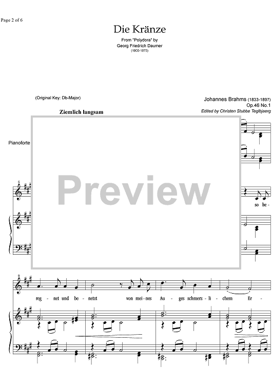 "Die Kränze Op.46 No. 1" Sheet Music by Johannes Brahms