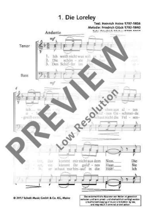 Digital Sheet Music for Die Loreley by Friedrich Silcher scored for Men's Choir (ttbb) A Cappella; id:492046