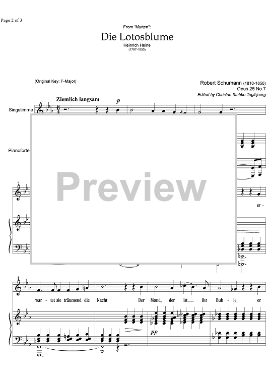 "Die Lotusblume Op.25 No. 7" Sheet Music by Robert Schumann
