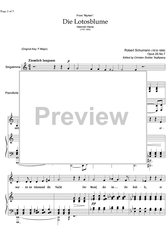 "Die Lotusblume Op.25 No. 7" Sheet Music by Robert Schumann