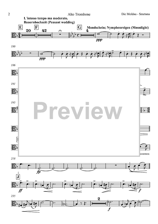 Digital Sheet Music for Die Moldau - Vltava - Alto Trombone by , Bedrich Smetana, Ulrich Bang scored for Brass Ensemble; id:419956