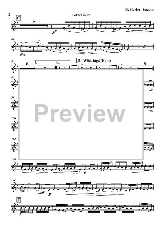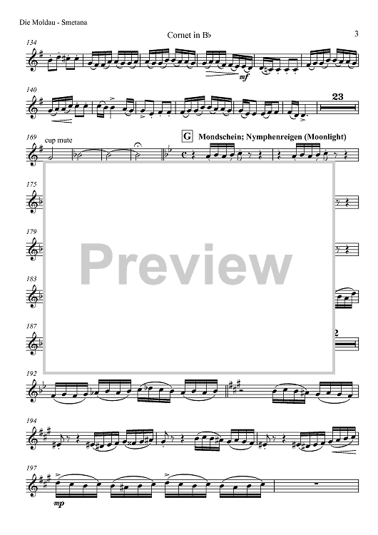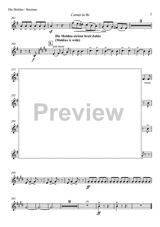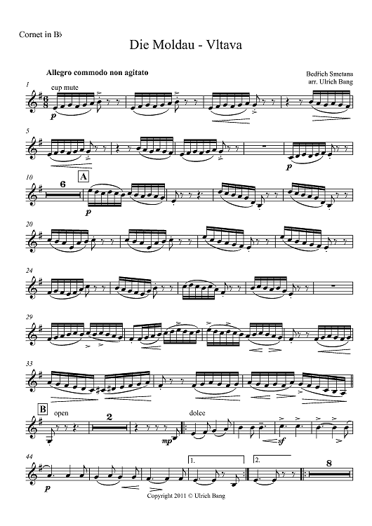 Digital Sheet Music for Die Moldau - Vltava - Cornet in Bb by , Bedrich Smetana, Ulrich Bang scored for Brass Ensemble; id:419952