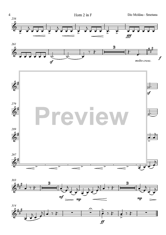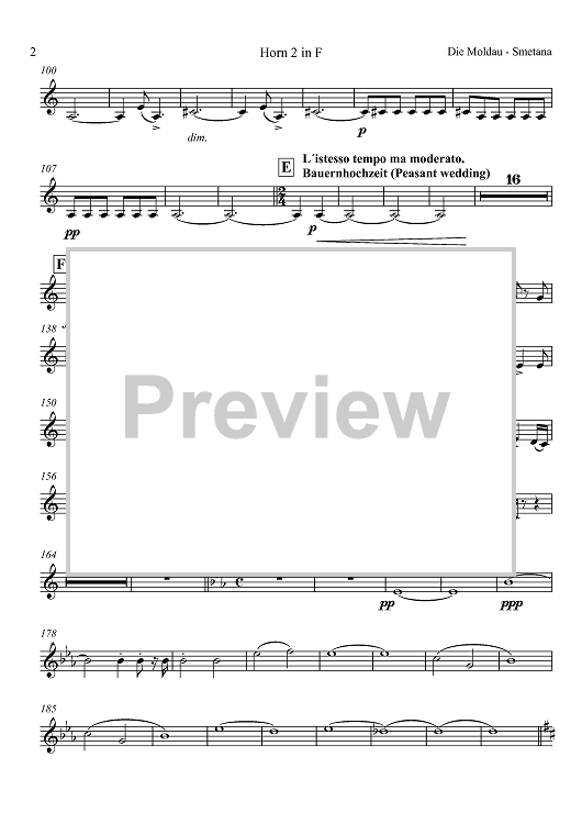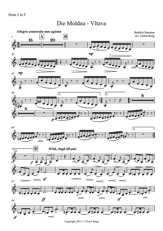 Digital Sheet Music for Die Moldau - Vltava - Horn in F 2 by , Bedrich Smetana, Ulrich Bang scored for Brass Ensemble; id:419955