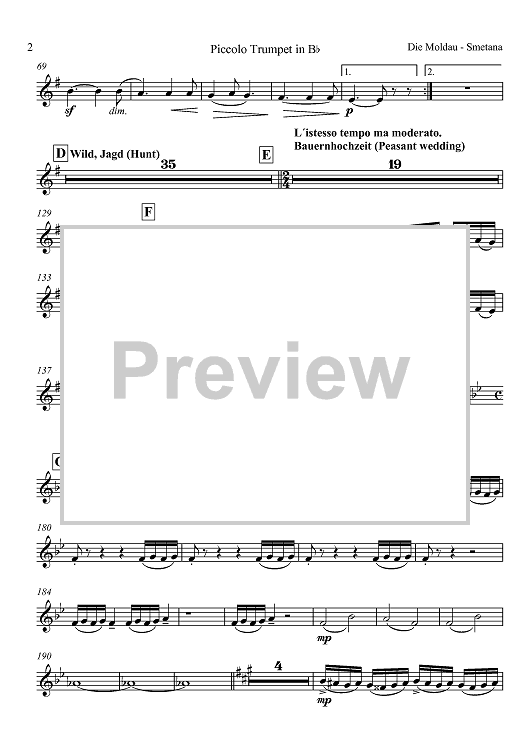 "Die Moldau - Vltava - Piccolo Trumpet in Bb" Sheet Music by Bedrich Smetana