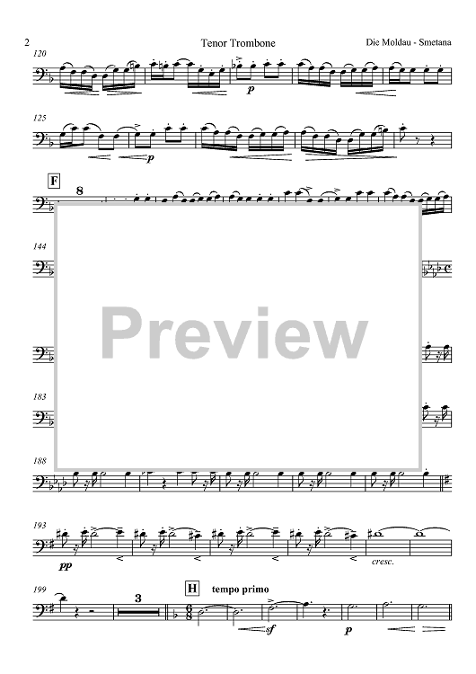 Digital Sheet Music for Die Moldau - Vltava - Tenor Trombone by , Bedrich Smetana, Ulrich Bang scored for Brass Ensemble; id:419958