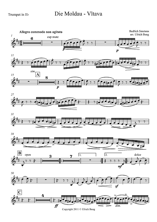 Digital Sheet Music for Die Moldau - Vltava - Trumpet in Eb by , Bedrich Smetana, Ulrich Bang scored for Brass Ensemble; id:419950