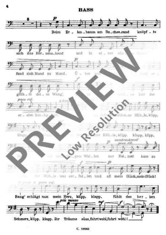 Digital Sheet Music for Die Mühle im Schwarzwald - Bass by Richard Eilenberg, Joseph Pircher scored for Mixed Choir (satb) With Piano; id:478849