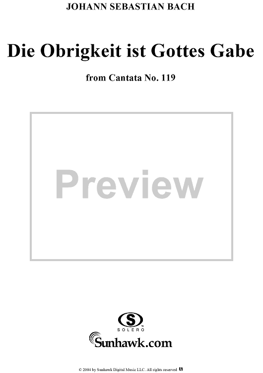 ""Die Obrigkeit ist Gottes Gabe", Aria, No. 5 from Cantata No. 119: "Preise, Jerusalem, den Herrn" - Piano Score" Sheet Music by Johann Sebastian Bach