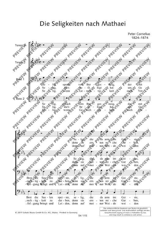 "Die Seligkeiten - Choral Score" Sheet Music by Peter Cornelius
