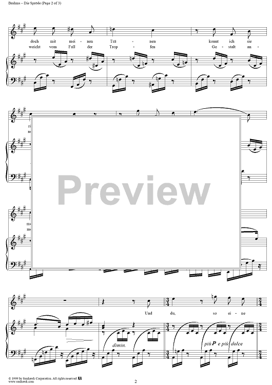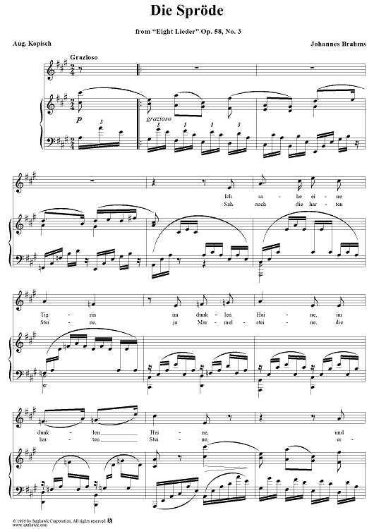 Digital Sheet Music for Die Spröde by Johannes Brahms, Aug. Kopisch scored for Voice/Piano; id:118491
