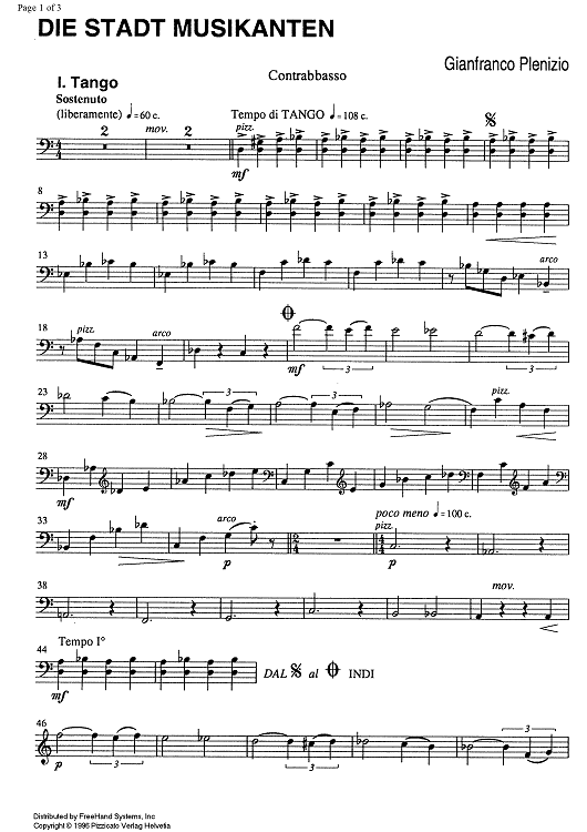 "Die Stadtmusikanten - Double Bass" Sheet Music by Gianfranco Plenizio