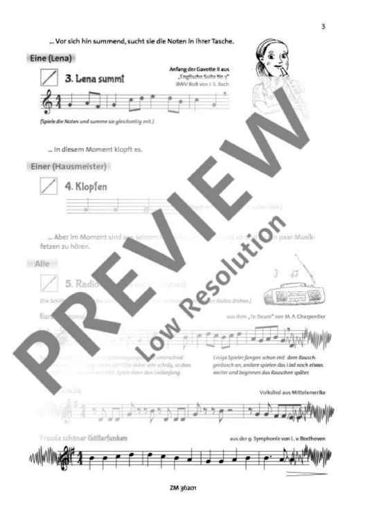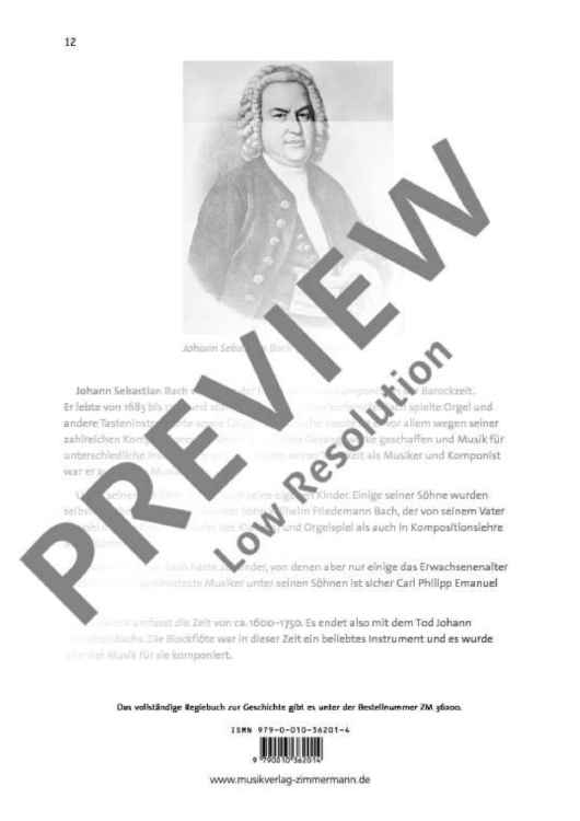 Ein verschwundenes Musikstück des berühmten Komponisten Johann Sebastian Bach, unerschrockene Kinder und eine Zeitmaschine – das sind die Zutaten zur spannenden und unterhaltsamen neuen Musikgeschichte von Almut Werner! Und ganz nebenbei lernt man neben modernen Spieltechniken auch etwas über die Epoche Bachs. Die Geschichte ist für eine Aufführung mit verteilten Rollen und Sprecher bestens geeignet, kann aber auch im Einzelunterricht verwendet werden. Eine separate Spielpartitur für alle Rollen steht zur Verfügung. Geeignet für fortgeschrittene Anfänger ab ca. 8 Jahren.