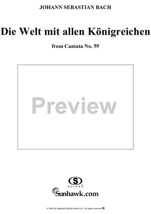 Digital Sheet Music for "Die Welt mit allen Königreichen", Aria, No. 4 from Cantata No. 59: "Wer mich liebet, der wird mein Wort halten" - Piano Score by Johann Sebastian Bach scored for Bass, Violin and Piano or Organ; id:303637