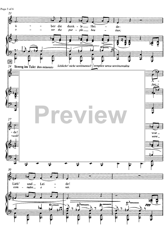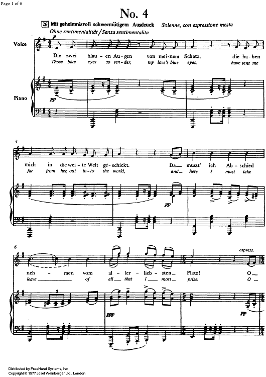 Digital Sheet Music for Die zwei Blauen Augen No. 4 by Gustav Mahler scored for Alto or Bass/Piano; id:332750