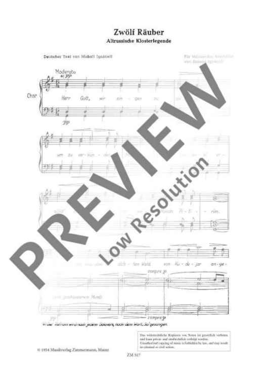 Digital Sheet Music for Die zwölf Räuber by Simeon Ignatíeff scored for Men's Choir; id:493575