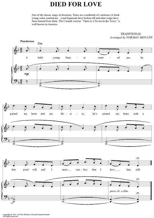 Digital Sheet Music for Died For Love by Norman Monath, Traditional scored for Piano/Vocal/Chords; id:234942