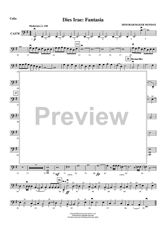 "Dies Irae: Fantasia - Cello" Sheet Music by Deborah Baker Monday