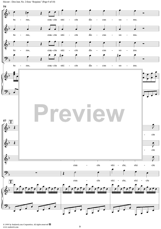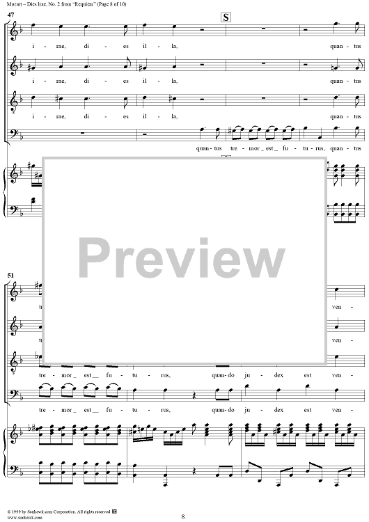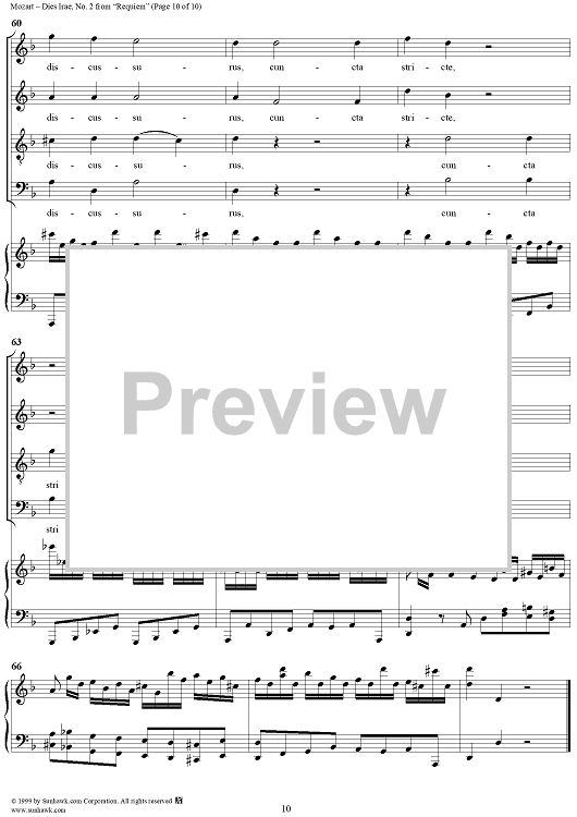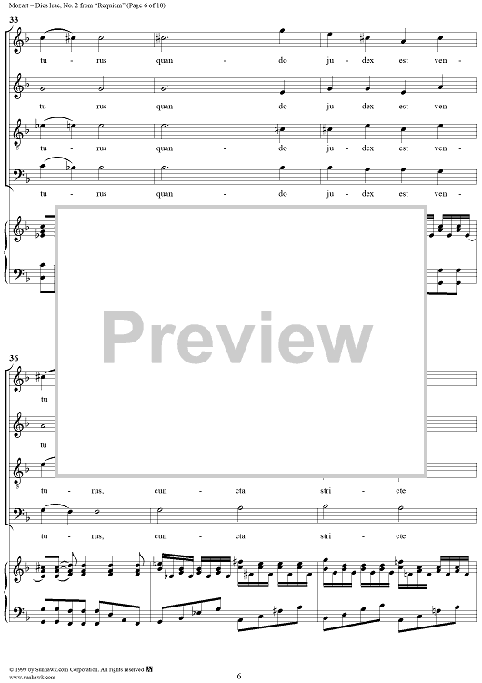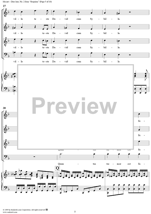 Digital Sheet Music for Dies Irae - No. 2 from "Requiem" K626 by Wolfgang Amadeus Mozart scored for Four-part Mixed Chorus/Piano; id:252577