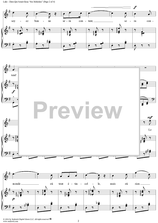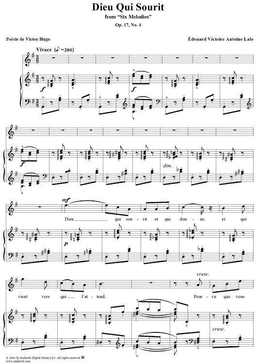 Digital Sheet Music for Dieu Qui Sourit, Op. 17, No. 4 by Edouard Victoire Antoine Lalo, Victor Hugo scored for Voice/Piano; id:298172
