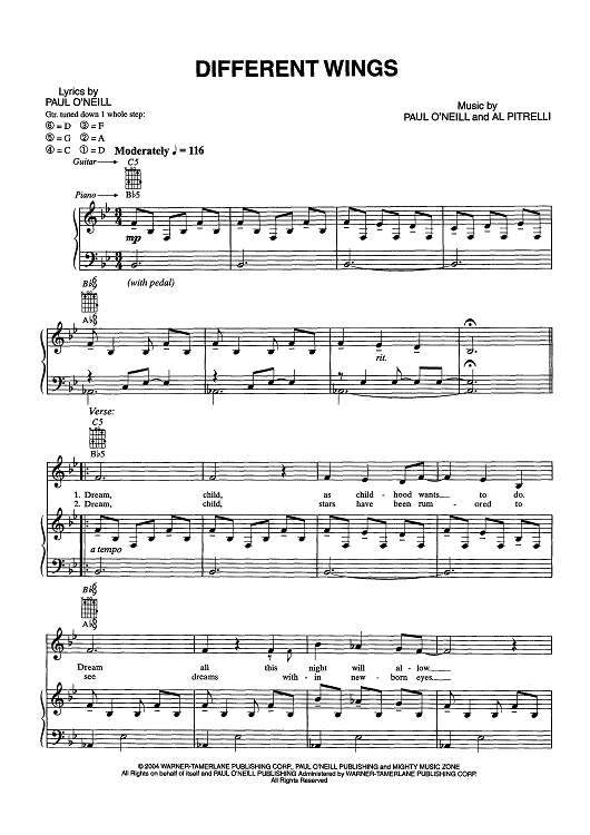 Digital Sheet Music for Different Wings by Trans-Siberian Orchestra, Paul O'Neill, Al Pitrelli scored for Piano/Vocal/Chords; id:465666