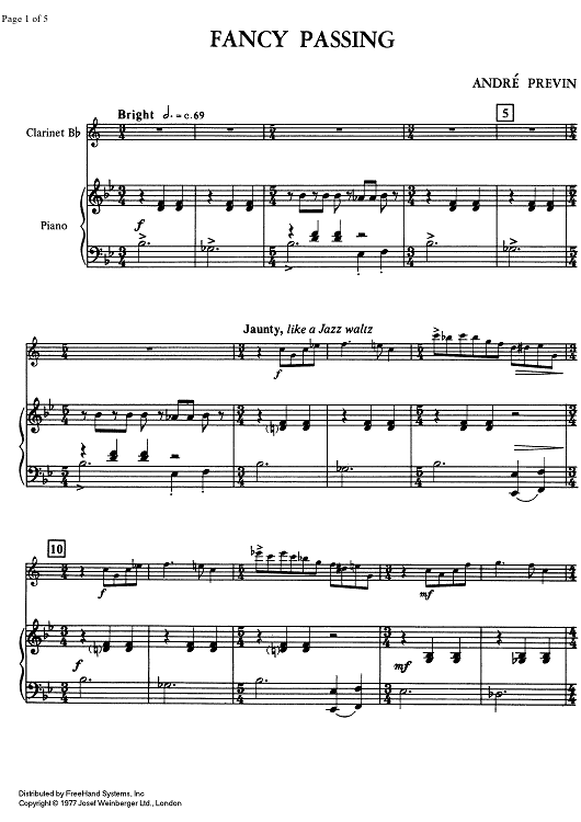 Digital Sheet Music for Difficult 1/1 - Fancy Passing - Score by Andre Previn scored for Clarinet/Piano; id:332762