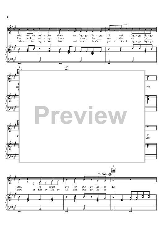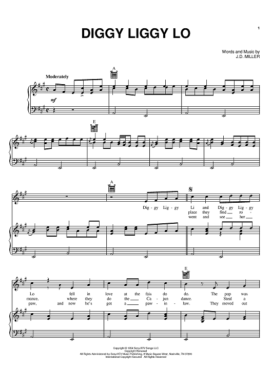Digital Sheet Music for Diggy Liggy Lo by J. D. Miller, Rusty & Doug scored for Piano/Vocal/Chords; id:383736