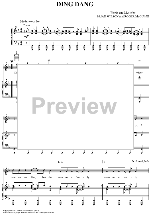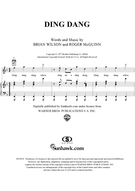 Digital Sheet Music for Ding Dang by Brian Wilson, The Beach Boys, Roger McGuinn scored for Piano/Vocal/Chords; id:264070