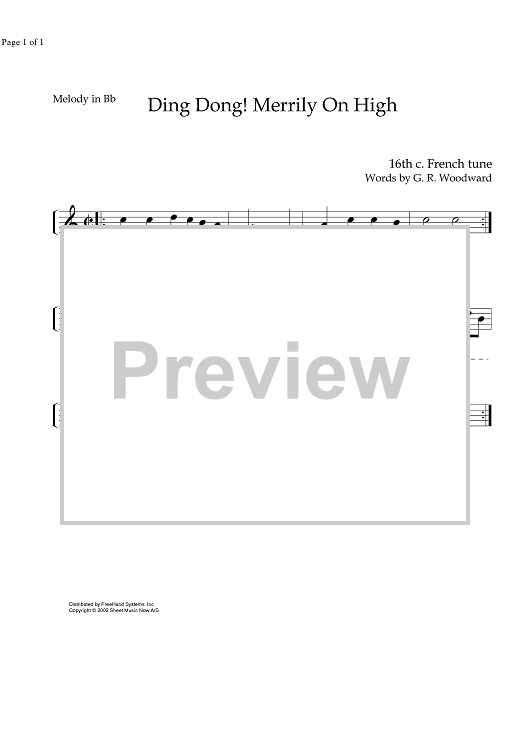 Digital Sheet Music for Ding Dong Merrily On High - B-flat Instrument by Traditional scored for Piano/Vocal; id:337520