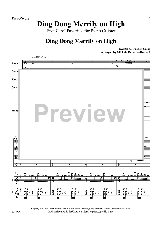 Digital Sheet Music for Ding Dong Merrily on High - Five Carol Favorites for Piano Quintet - Piano/Score by , Various, Michele Robeson-Howard scored for Piano Quintet; id:458266