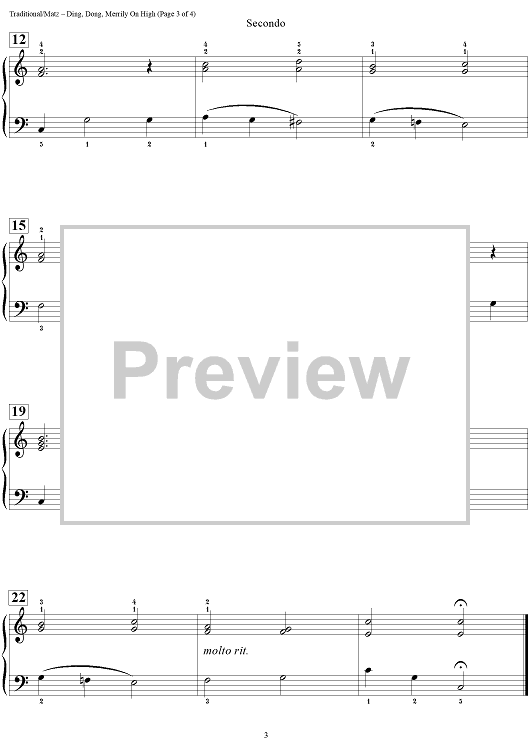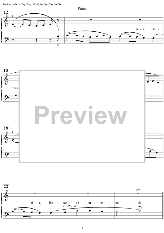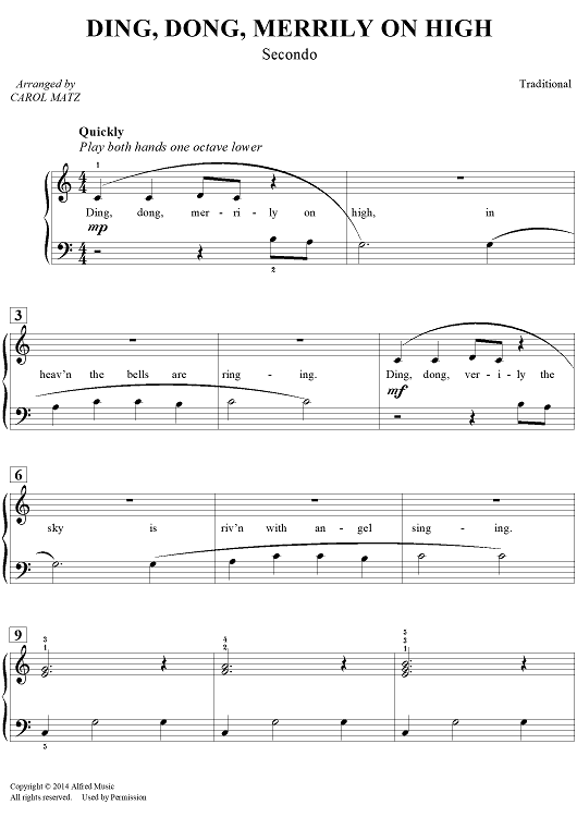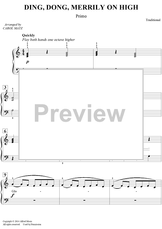 Digital Sheet Music for Ding, Dong, Merrily on High by Carol Matz, Traditional scored for 1 Piano, 4 Hands; id:454170