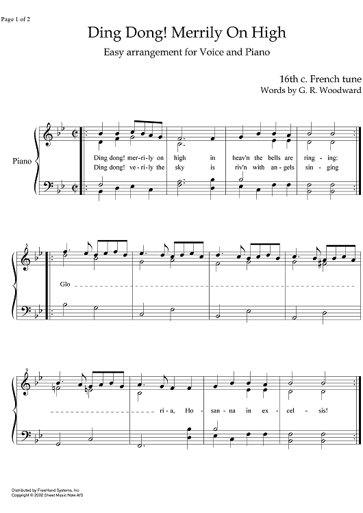 Digital Sheet Music for Ding Dong Merrily On High - Score by Traditional scored for Piano/Vocal; id:337518