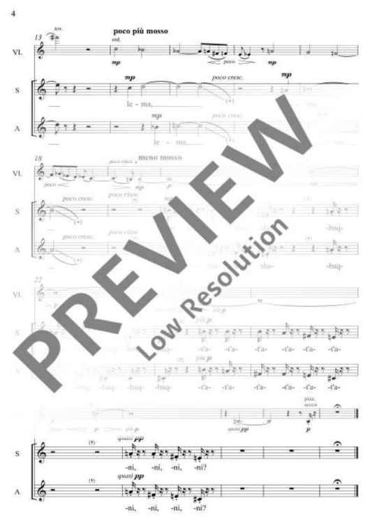 In his work Diptychon for women's choir and violin, the Danish composer Henrik Colding-Jørgensen plays with different styles of music. Harmonic sections alternate with atonal passages. The piece consists of two movements: Eloi is written in Aramaic, Clamavi in Latin.