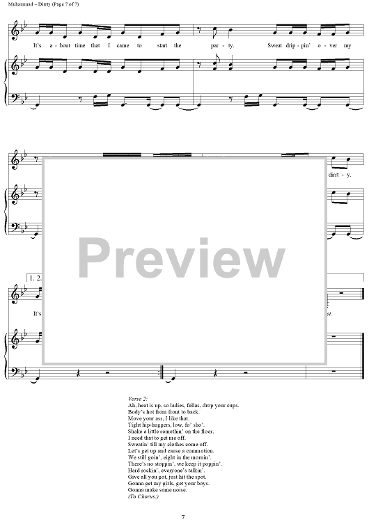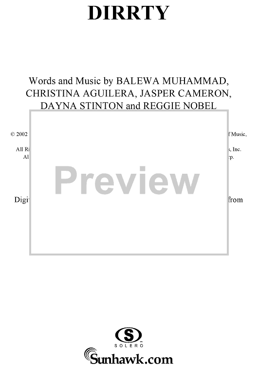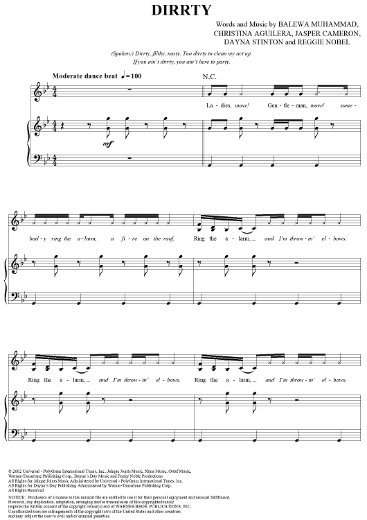 Digital Sheet Music for Dirrty by Balewa Muhammad, Jasper Cameron, Dayna Stinton, Reggie Nobel, Christina Aguilera scored for Piano/Vocal/Chords; id:293368