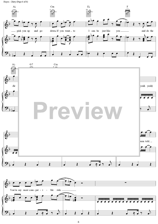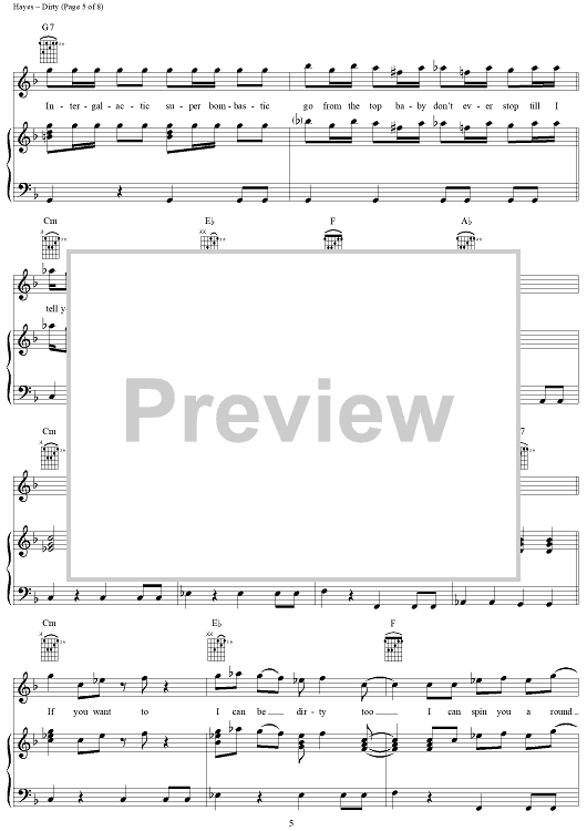 Digital Sheet Music for Dirty by Wally Afanasieff, Darren Hayes scored for Piano/Vocal/Chords; id:293434