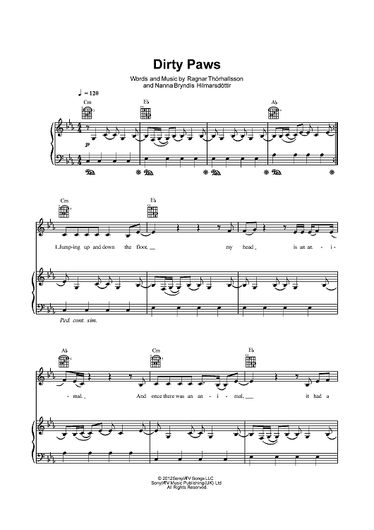 Digital Sheet Music for Dirty Paws by Nanna Bryndis Hilmarsdottir, Ragnar Thorhallsson, Of Monsters and Men scored for Piano/Vocal/Chords; id:434650