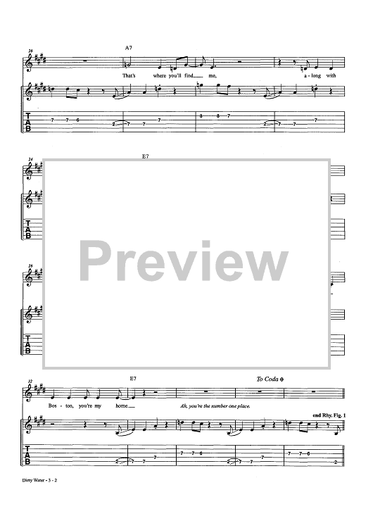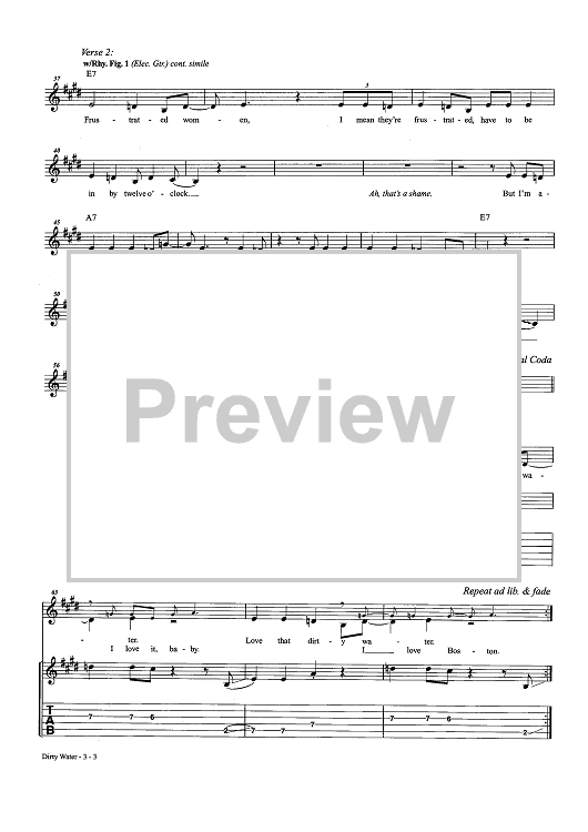 Digital Sheet Music for Dirty Water by Ed Cobb scored for Easy Guitar Tab/Vocal/Chords; id:457180