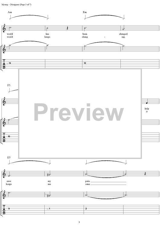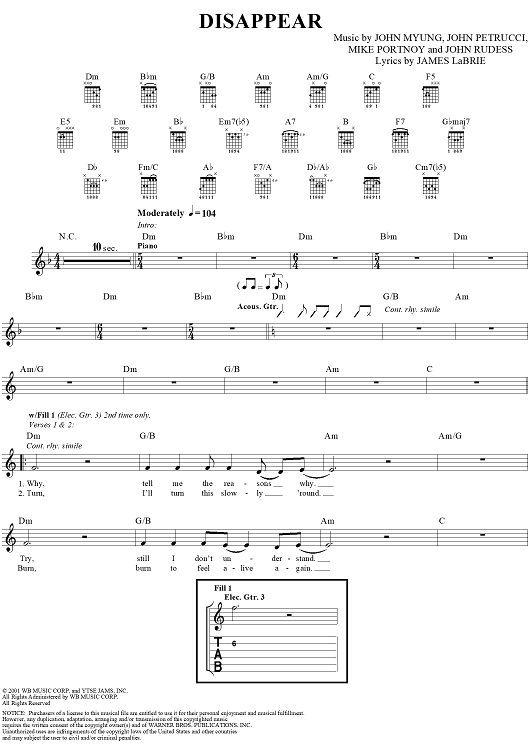 Digital Sheet Music for Disappear by John Myung, Dream Theater, John Petrucci, Mike Portnoy, Jordan Rudess, James LaBrie scored for Guitar Tab/Vocal; id:293418