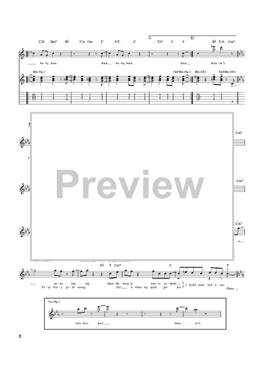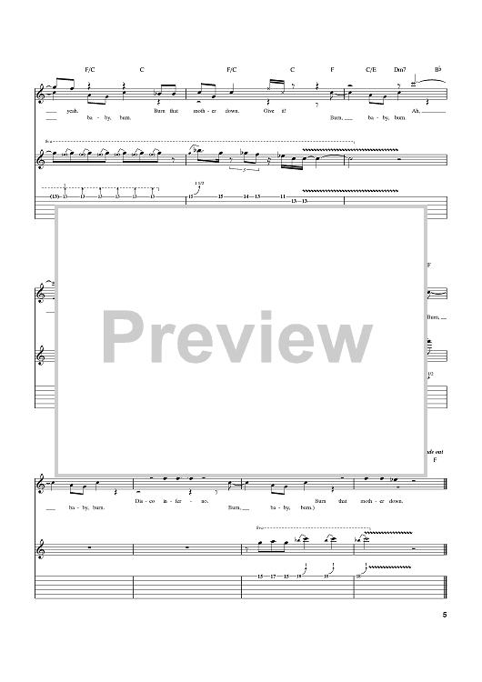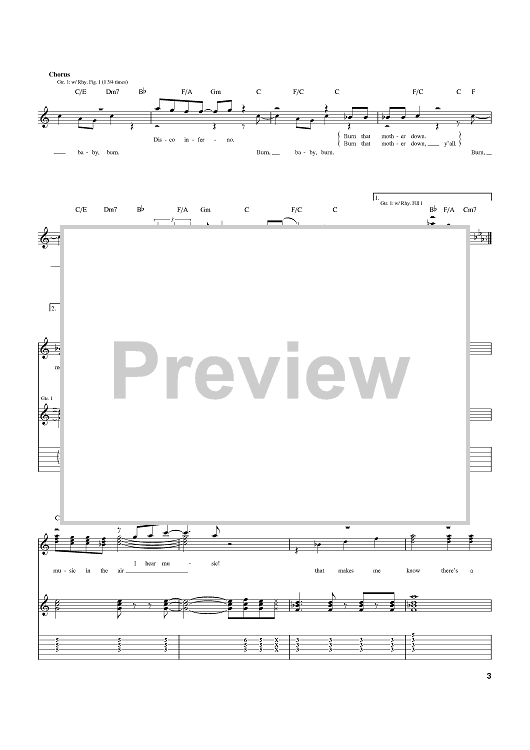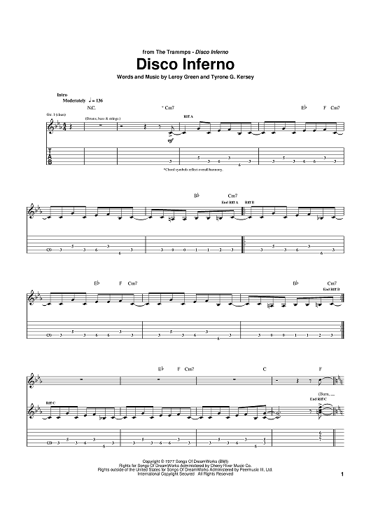 Digital Sheet Music for Disco Inferno by Tina Turner, Cyndi Lauper, Leroy Green, Tyrone G. Kersey, The Trammps scored for Guitar Tab; id:373551