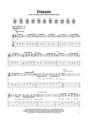 Digital Sheet Music for Disease by Matchbox Twenty, Rob Thomas, Mick Jagger scored for Easy Guitar Tab; id:371492