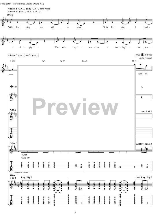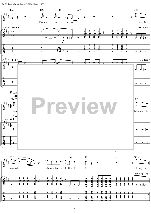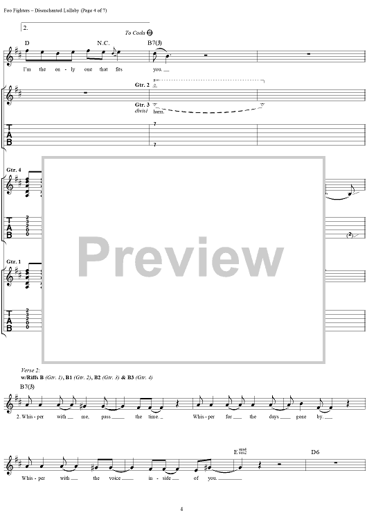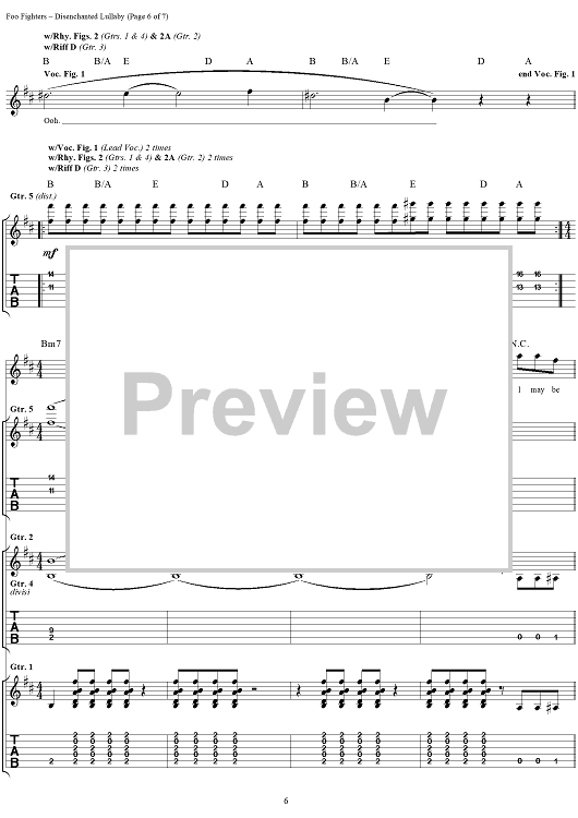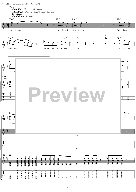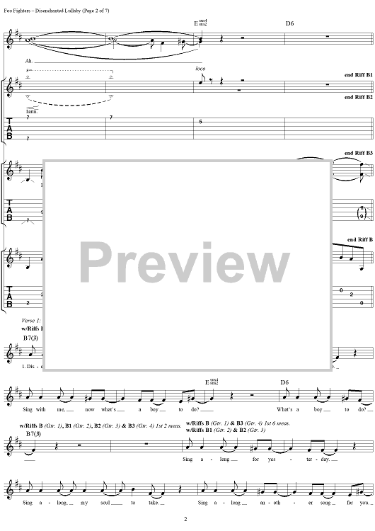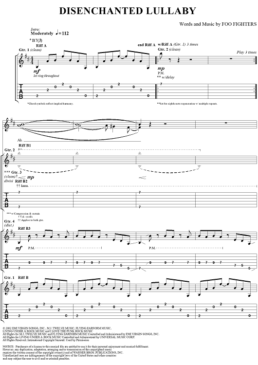 Digital Sheet Music for Disenchanted Lullaby by Foo Fighters scored for Guitar Tab/Vocal; id:296971