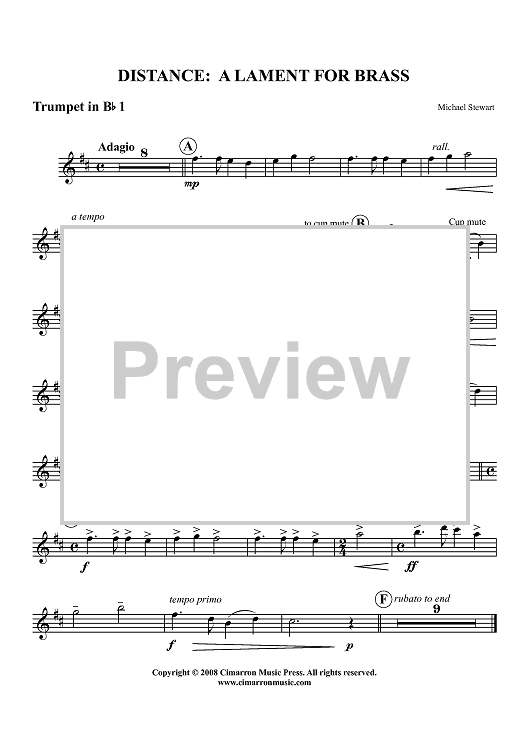 Digital Sheet Music for Distance: A Lament for Brass - Trumpet 1 in Bb by Michael Stewart scored for Brass Ensemble; id:417076