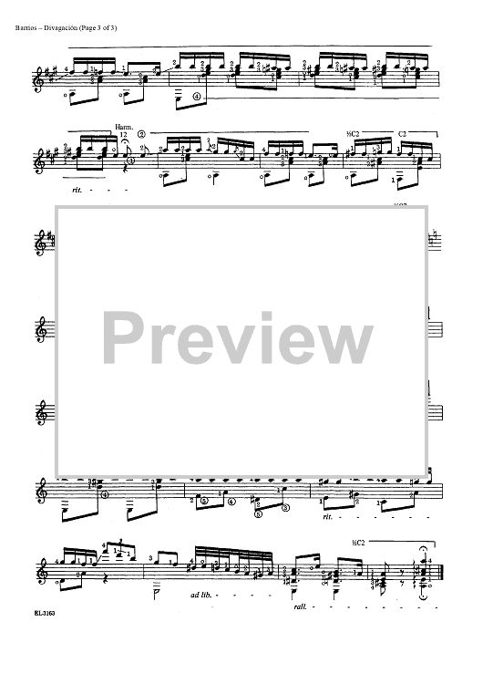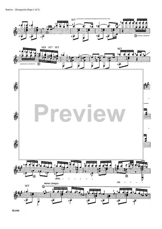 "Divagacion (en Imitacion al Violin)" Sheet Music by Agustin Barrios Mangore
