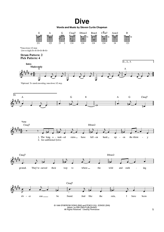 Digital Sheet Music for Dive by Steven Curtis Chapman scored for Easy Guitar; id:398214