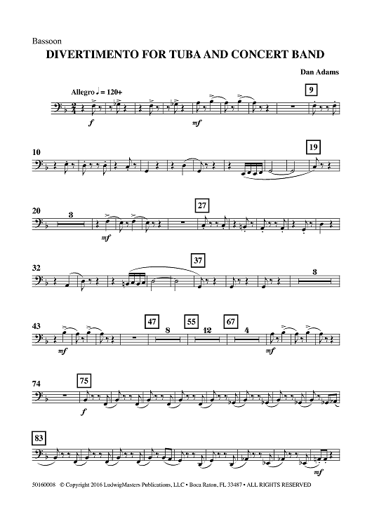 Digital Sheet Music for Divertimento for Tuba and Concert Band - Bassoon by , Dan Adams scored for Concert Band; id:461946
