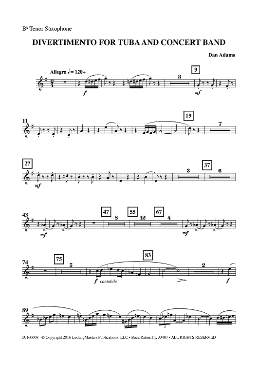"Divertimento for Tuba and Concert Band - Bb Tenor Sax" Sheet Music by Dan Adams